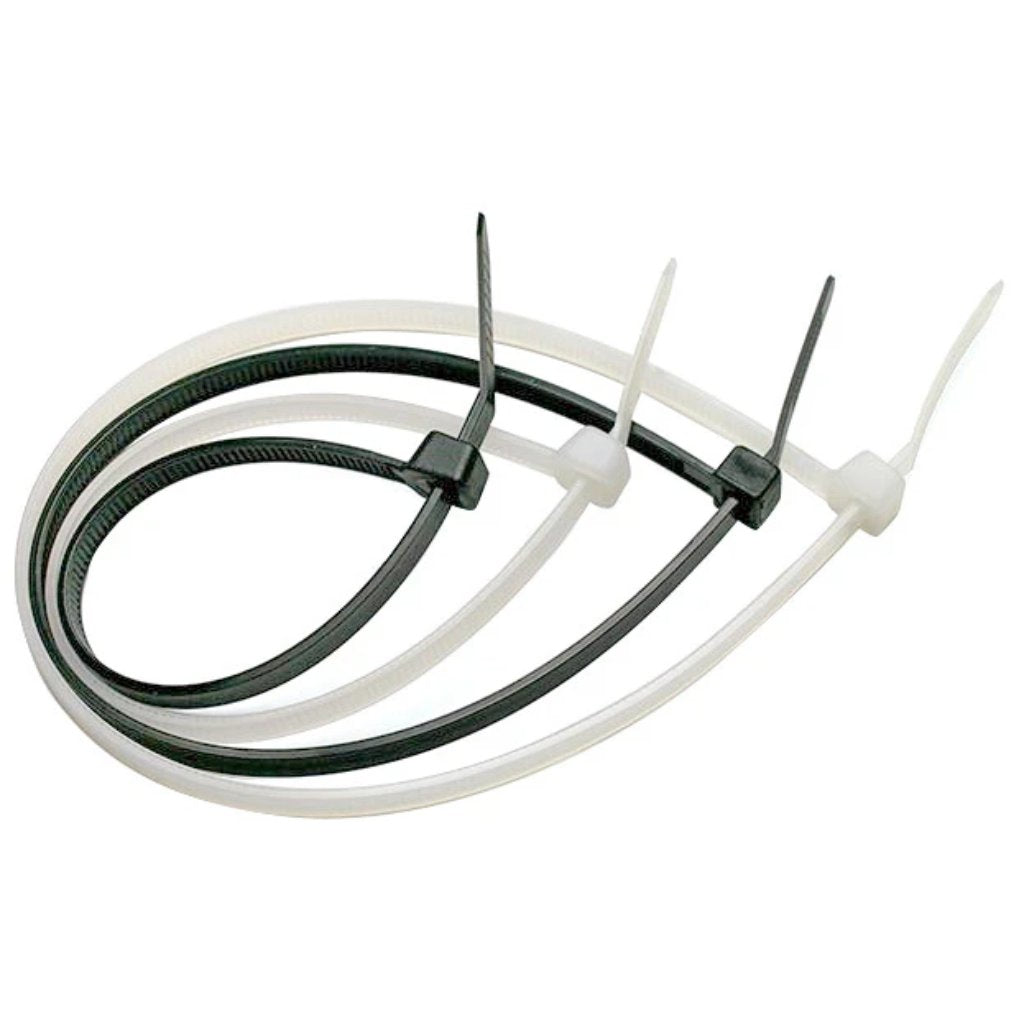 Ruwag Cable Ties โ available in black and white, perfect for organizing cables and wires.